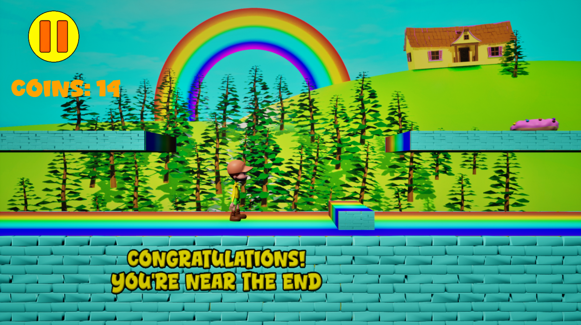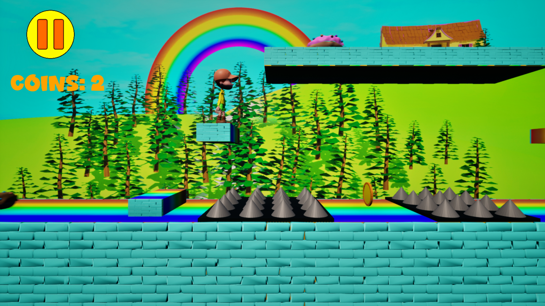 Rainbow Platform is a 2.5D indie single-player game for PC. The goal is to overcome obstacles and collect all the coins. Obstacles include parkour, donuts and spiked platforms. Donuts are vulnerable: they can be destroyed by the player who jumps on them. The platform is named "Rainbow Platform" for its colorful graphics, which make it a fun and cheerful game, thanks also to its cartoon style. If you want to reach the end of the game you'll have to commit and never give up, but don't forget that the main goal is to have fun.